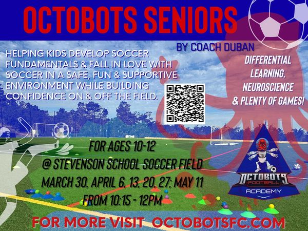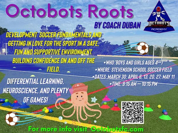 Come and enjoy the Octobots methodology and our clinic “Decision making in youth soccer” at the beautiful soccer field at Stevenson school.