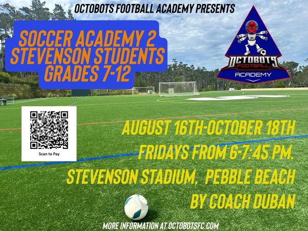 Come and enjoy the beautiful Stevenson Soccer field and the Octobots methodology in our Academy 1 group. This is a program for all Stevenson Students in grades between 7th-12th, no matter if the student plays at Varsity level or not, everyone is welcome to come play and have fun.